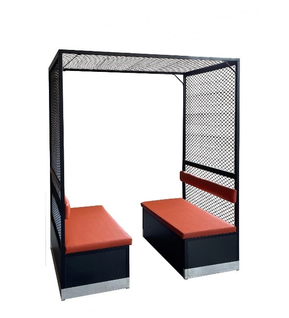 Offrez à vos clients une expérience unique avec cette structure originale en cage, composée de deux banquettes confortables en vis-à-vis. Parfaite pour les restaurants, cafés et concepts de street food, elle allie design moderne et convivialité.