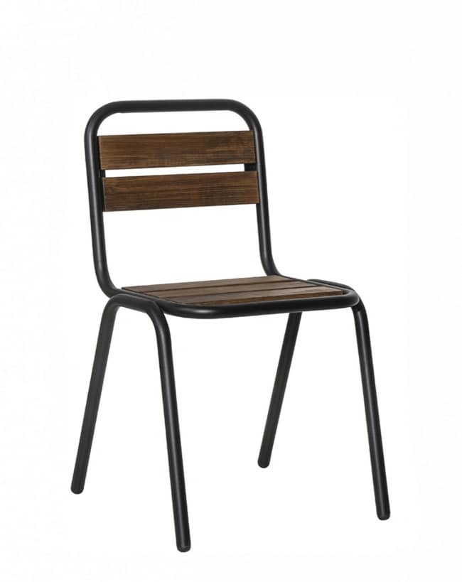 Une chaise avec un cadre en acier galvanisé traité pour usage extérieur.